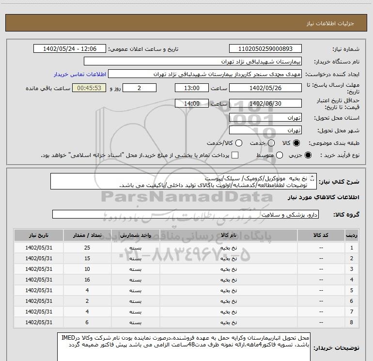 نام دستگاه خریدار:بیمارستان شهیدلبافی نژاد تهران