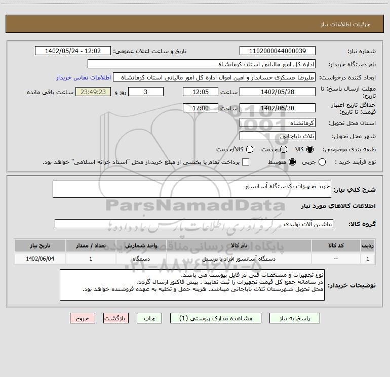 نام دستگاه خریدار:اداره کل امور مالیاتی استان کرمانشاه