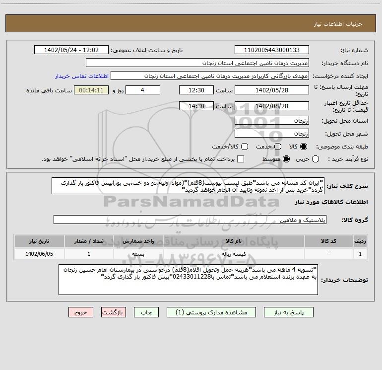 نام دستگاه خریدار:مدیریت درمان تامین اجتماعی استان زنجان