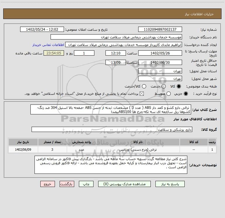 | 1 | -- | ترالی (چرخ دستی) اورژانس | عدد | 3 | 1402/06/09 |