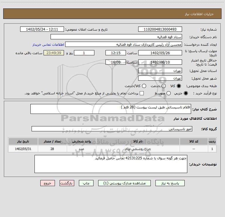 | 1 | -- | چراغ روشنایی توکار | عدد | 28 | 1402/05/31 |