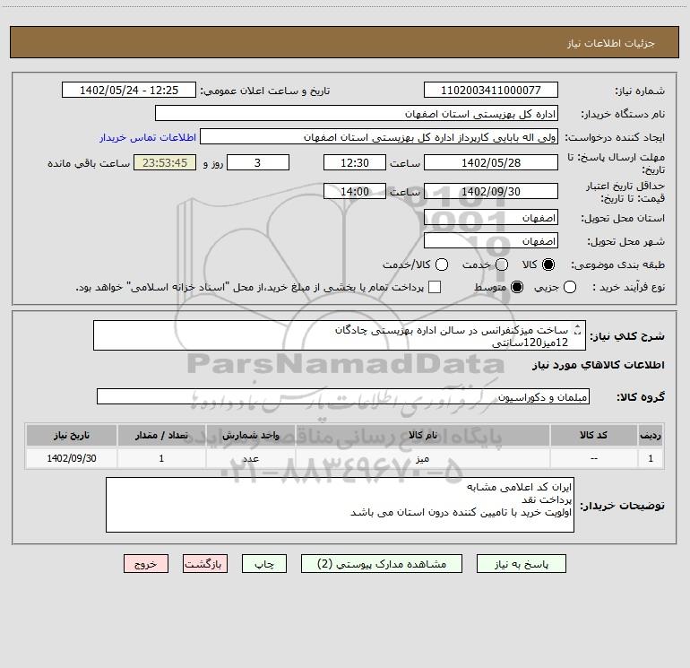 شرح کلی نیاز: ساخت میزکنفرانس در سالن اداره بهزیستی چادگان