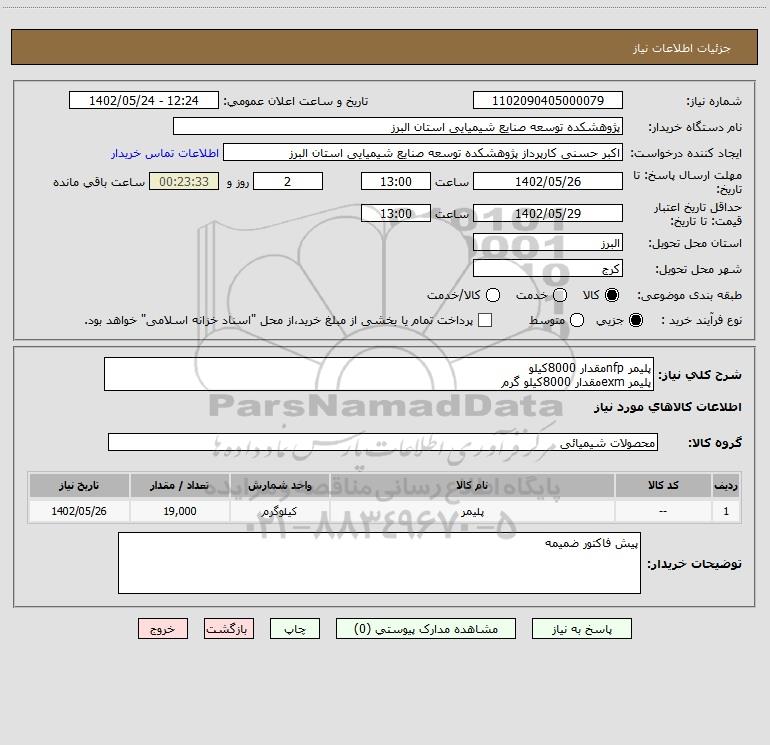 نام دستگاه خریدار:پژوهشکده توسعه صنایع شیمیایی استان البرز