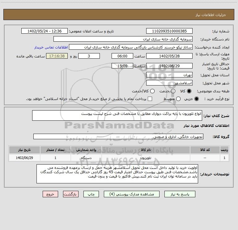 استعلام انواع تلویزیون با پایه براکت دیواری مطابق با مشخصات فنی شرح لیست پیوست, استعلام انواع تلویزیون با پایه براکت دیواری مطابق با مشخصات فنی شرح لیست پیوست