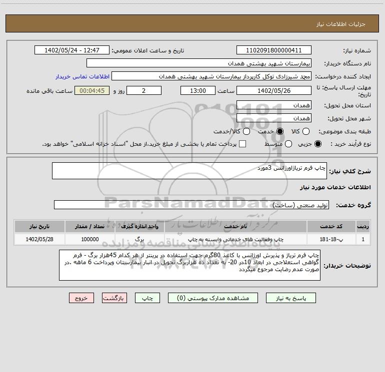 شرح کلی نیاز: چاپ فرم تریاژاورژانس 3مورد