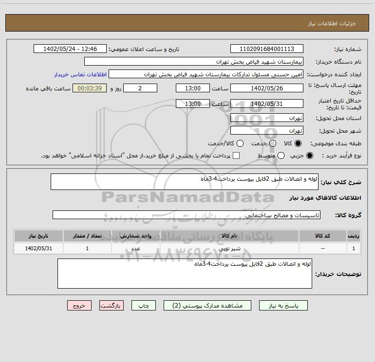 شرح کلی نیاز: لوله و اتصالات طبق 2فایل پیوست پرداخت4-3ماه