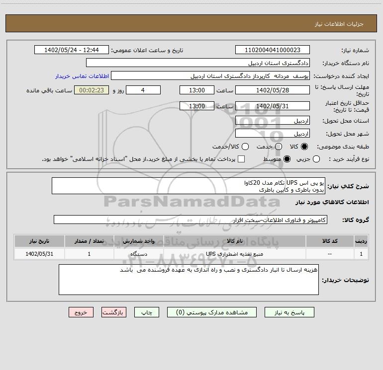 | 1 | -- | منبع تغذیه اضطراری UPS | دستگاه | 1 | 1402/05/31 |