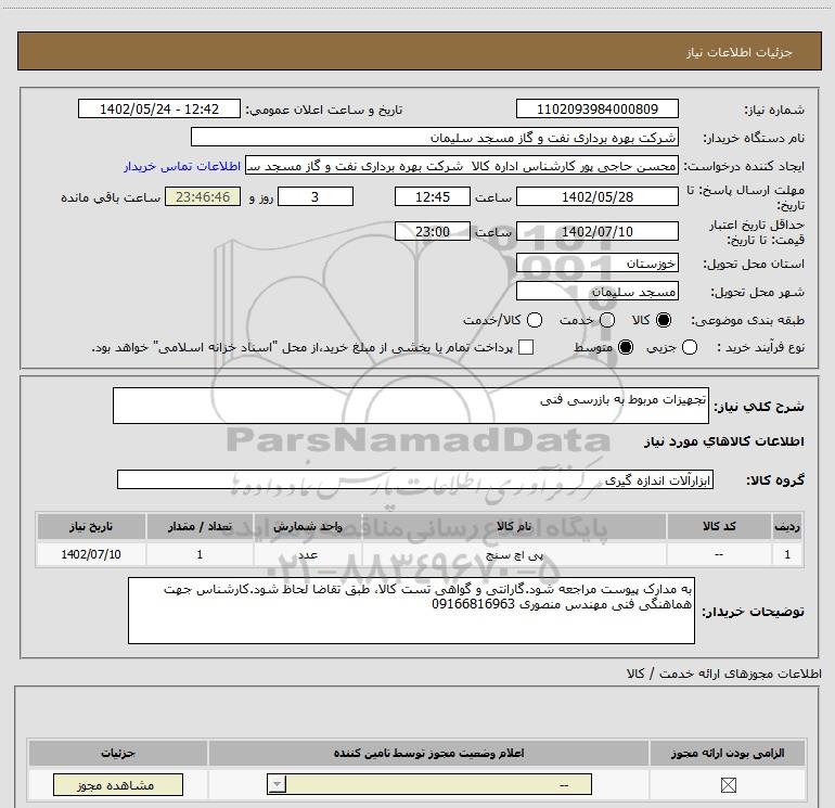 شرح کلی نیاز: تجهیزات مربوط به بازرسی فنی