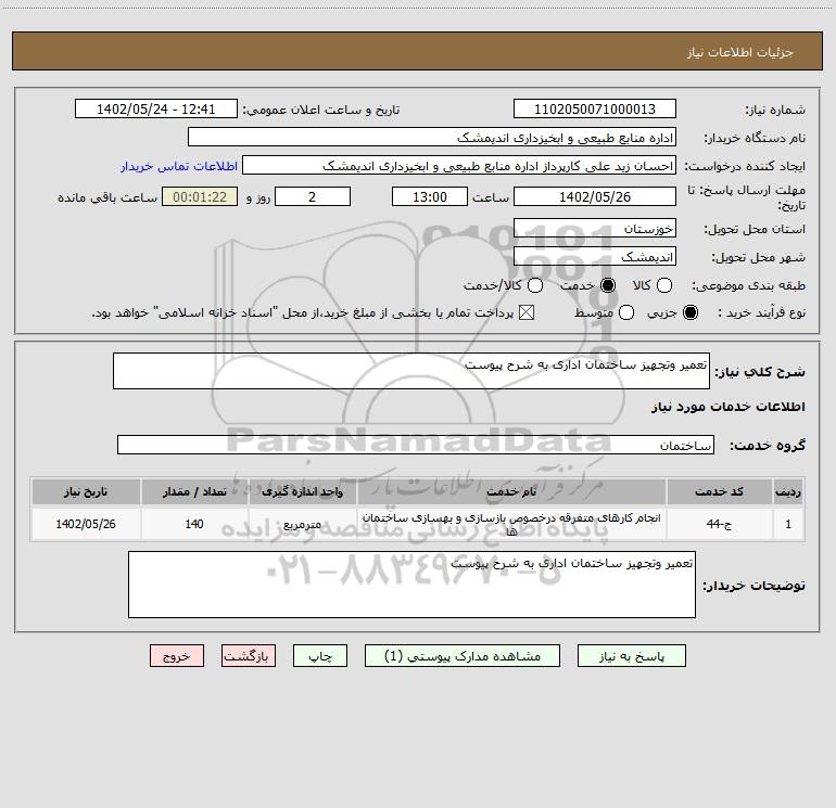 نام دستگاه خریدار:اداره منابع طبیعی و ابخیزداری اندیمشک