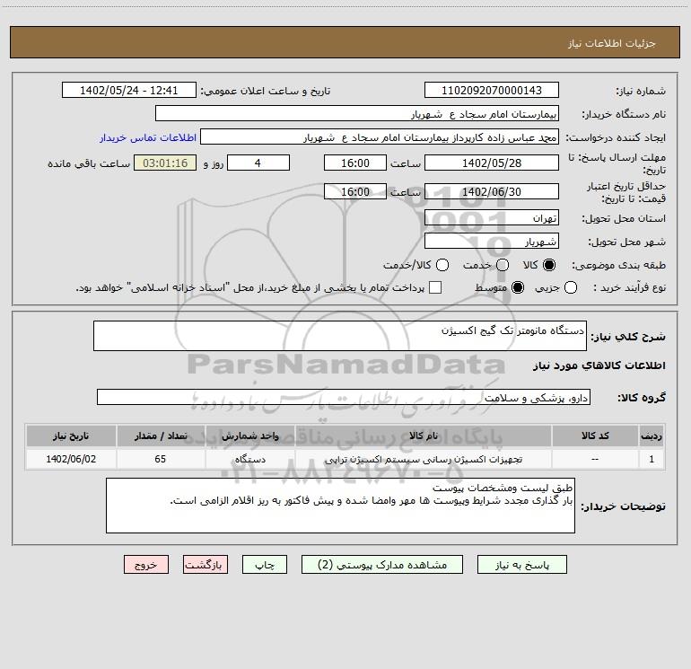 نام دستگاه خریدار:بیمارستان امام سجاد ع شهریار