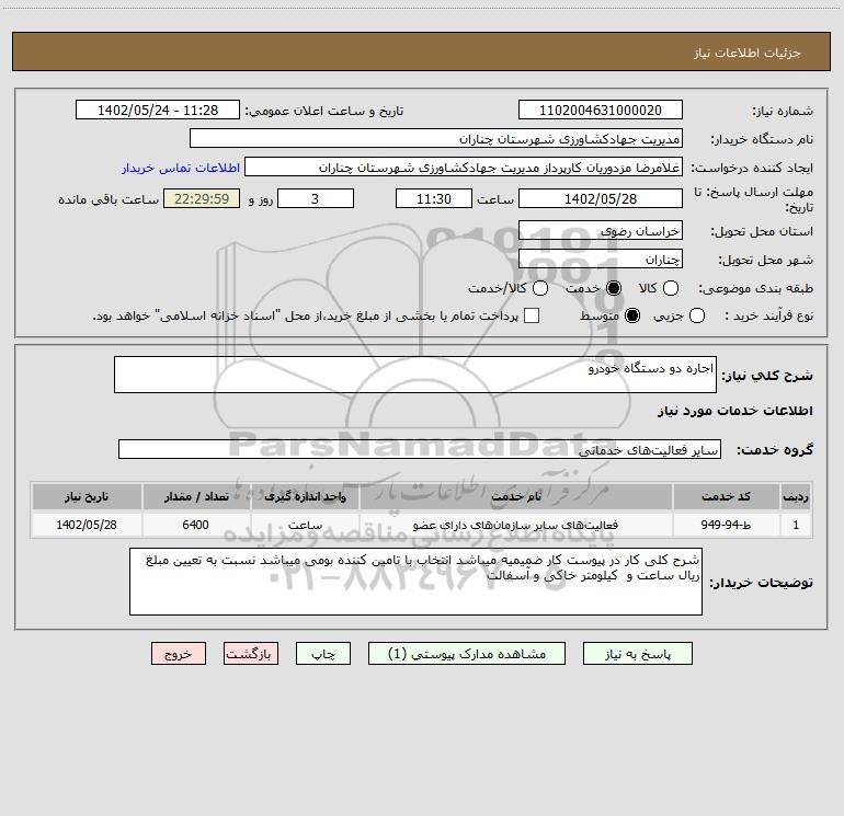 نام دستگاه خریدار:مدیریت جهادکشاورزی شهرستان چناران