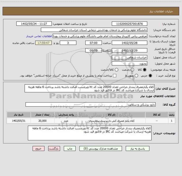 نام دستگاه خریدار:دانشگاه علوم پزشکی و خدمات بهداشتی درمانی استان خراسان شمالی