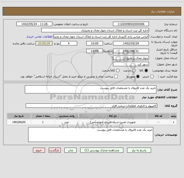 نام دستگاه خریدار:اداره کل ثبت اسناد و املاک استان چهار محال و بختیاری