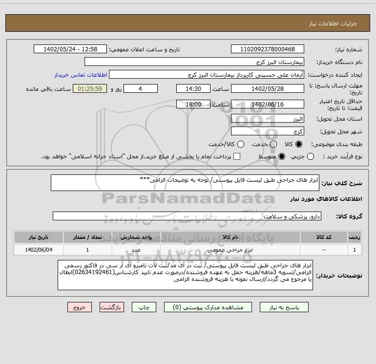 نام دستگاه خریدار:بیمارستان البرز کرج