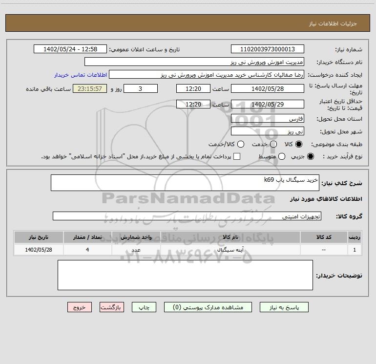 نام دستگاه خریدار:مدیریت اموزش وپرورش نی ریز