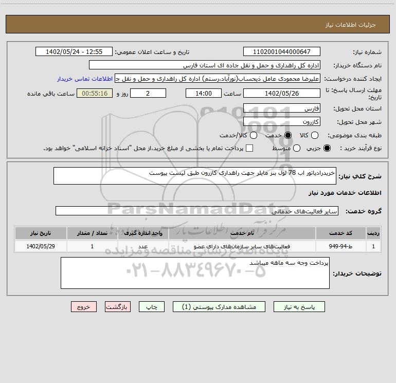نام دستگاه خریدار:اداره کل راهداری و حمل و نقل جاده ای استان فارس