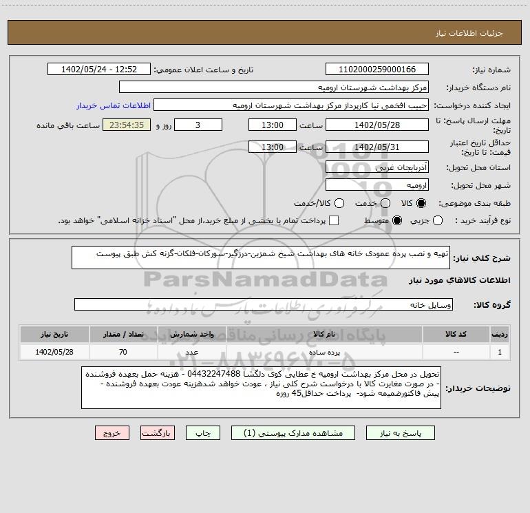 شرح کلی نیاز: تهیه و نصب پرده عمودی خانه های بهداشت شیخ شمزین-درزگیر-سورکان-فلکان-گزنه کش طبق پیوست