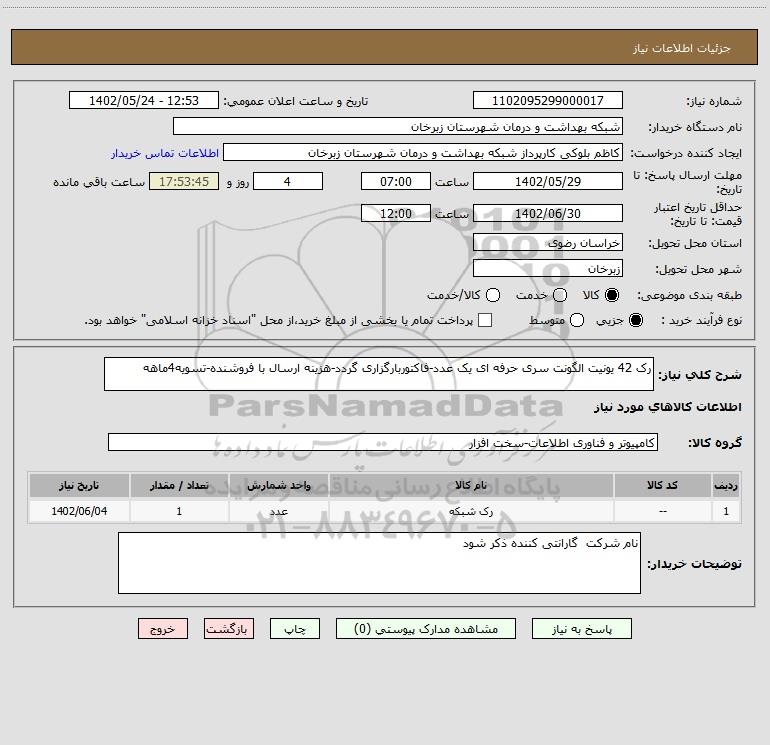 نام دستگاه خریدار:شبکه بهداشت و درمان شهرستان زبرخان