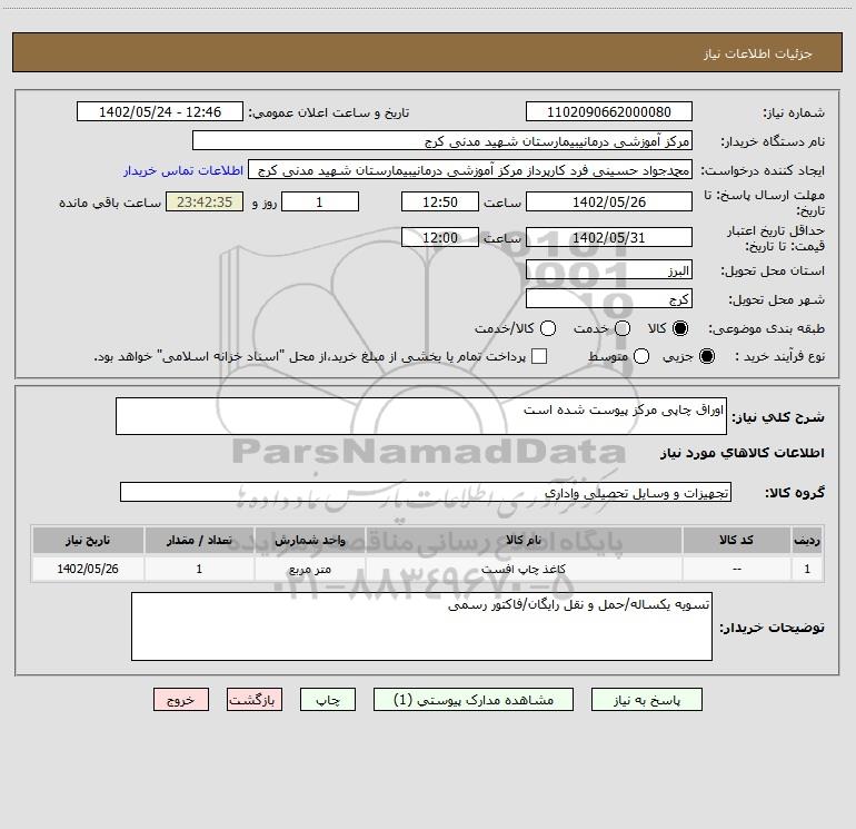 شرح کلی نیاز: اوراق چاپی مرکز پیوست شده است