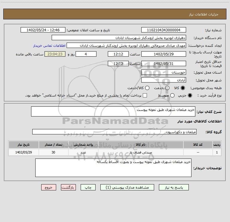 توضیحات خریدار:خرید مبلمان شهری طبق نمونه پیوست و بصورت اقساط یکساله