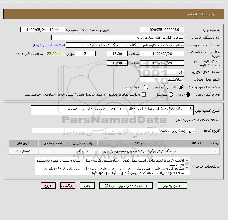 نام دستگاه خریدار:سرمایه گذاری خانه سازی ایران