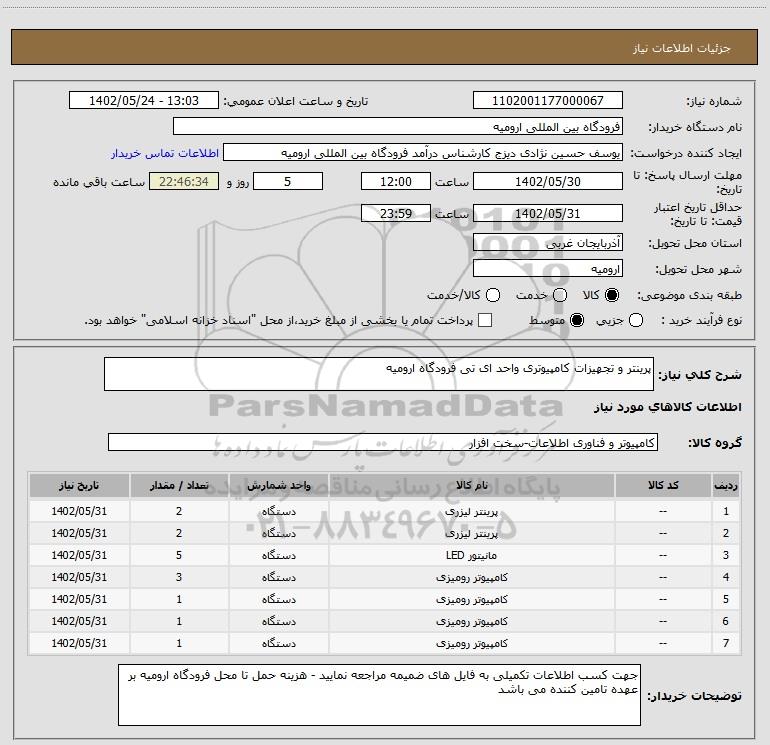 استعلام پرینتر و تجهیزات کامپیوتری واحد ای تی فرودگاه ارومیه, استعلام پرینتر و تجهیزات کامپیوتری واحد ای تی فرودگاه ارومیه