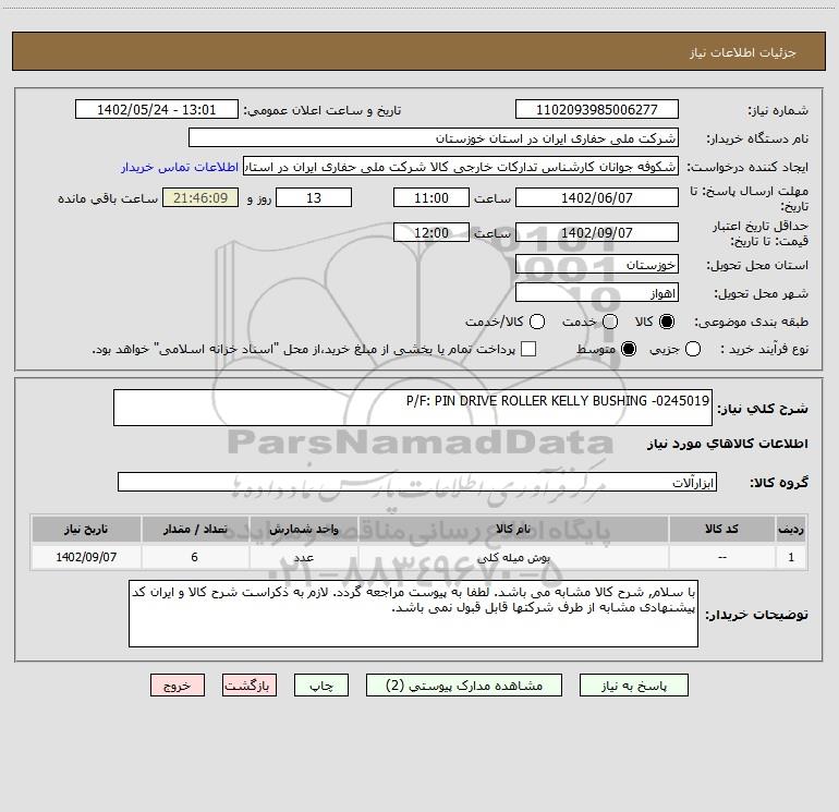 استعلام P/F: PIN DRIVE ROLLER KELLY BUSHING -0245019, استعلام P/F: PIN DRIVE ROLLER KELLY BUSHING -0245019