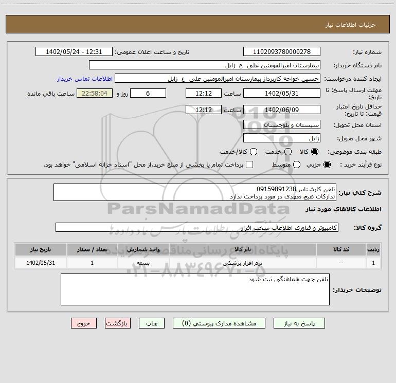 شرح کلی نیاز: تلفن کارشناس09159891238