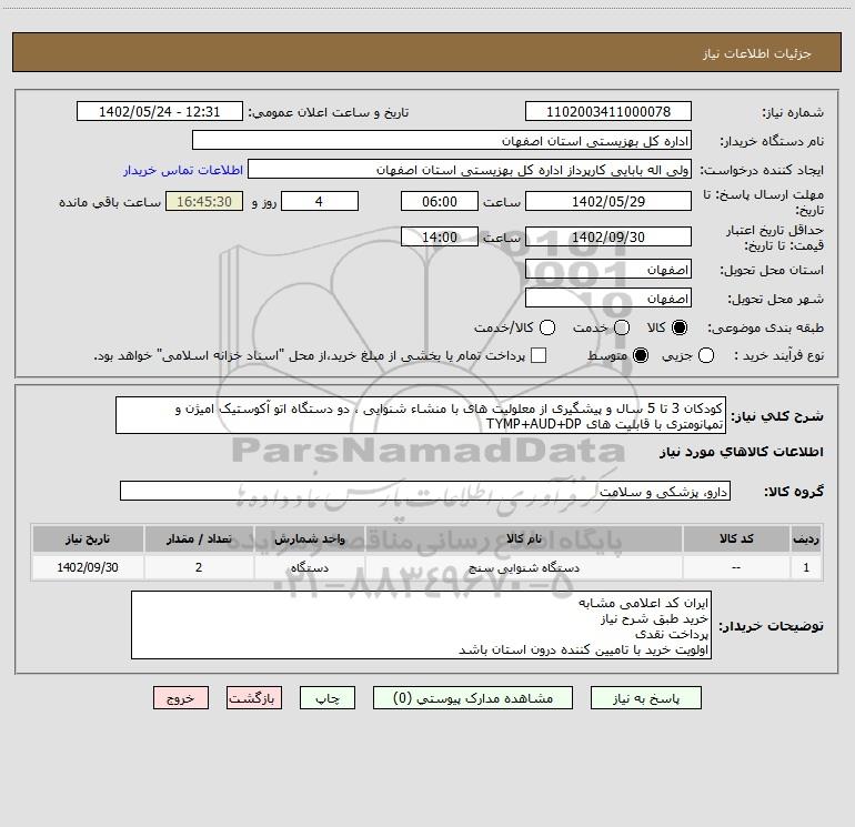 شرح کلی نیاز: کودکان 3 تا 5 سال و پیشگیری از معلولیت های با منشاء شنوایی ، دو دستگاه اتو آکوستیک امیژن و تمپانومتری با قابلیت های TYMP+AUD+DP