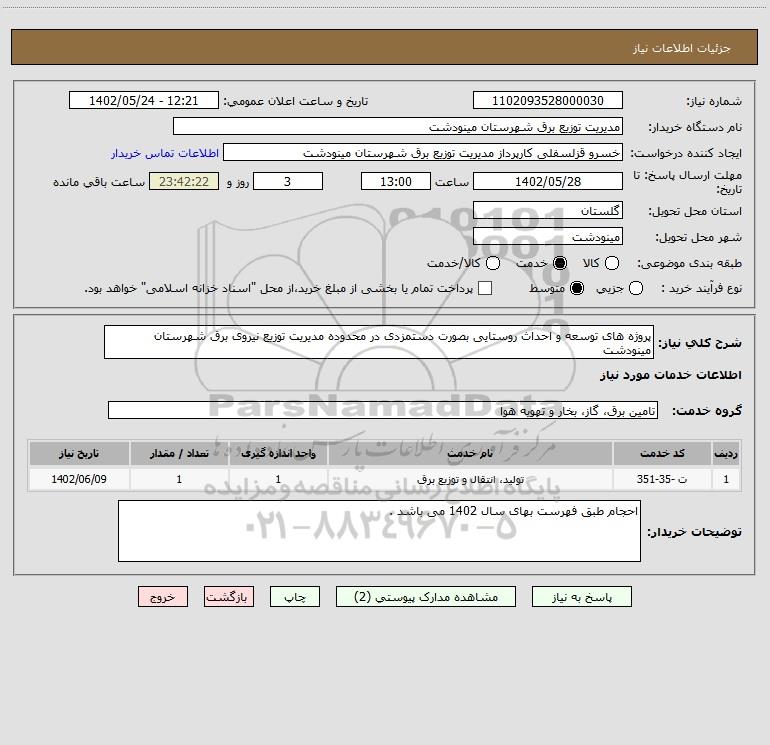نام دستگاه خریدار:مدیریت توزیع برق شهرستان مینودشت