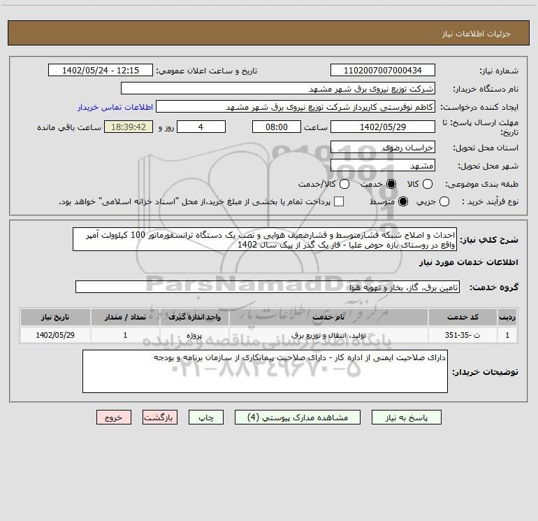 نام دستگاه خریدار:شرکت توزیع نیروی برق شهر مشهد