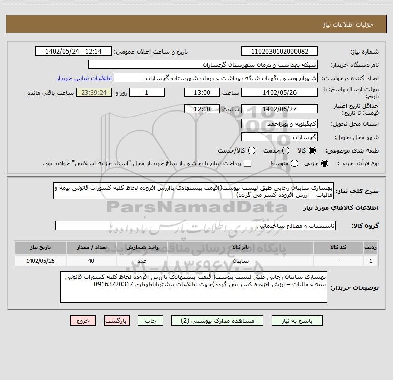 نام دستگاه خریدار:شبکه بهداشت و درمان شهرستان گچساران