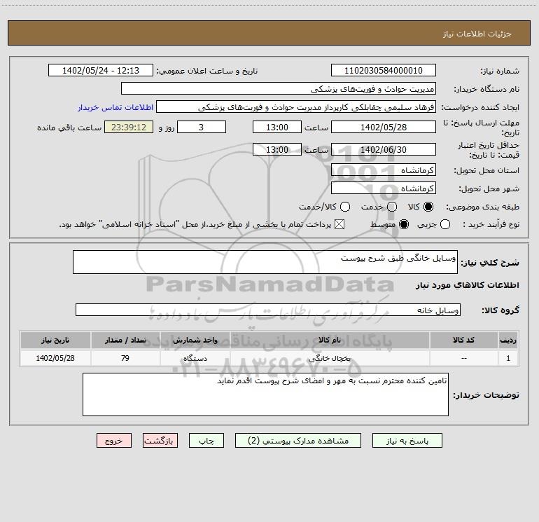 شرح کلی نیاز: وسایل خانگی طبق شرح پیوست