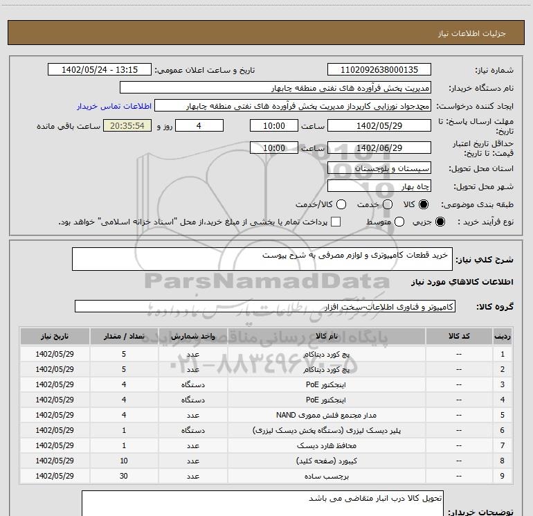 شرح کلی نیاز: خرید قطعات کامپیوتری و لوازم مصرفی به شرح پیوست