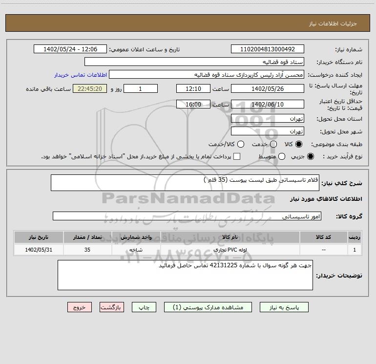 شرح کلی نیاز: قلام تاسیساتی طبق لیست پیوست (35 قلم )