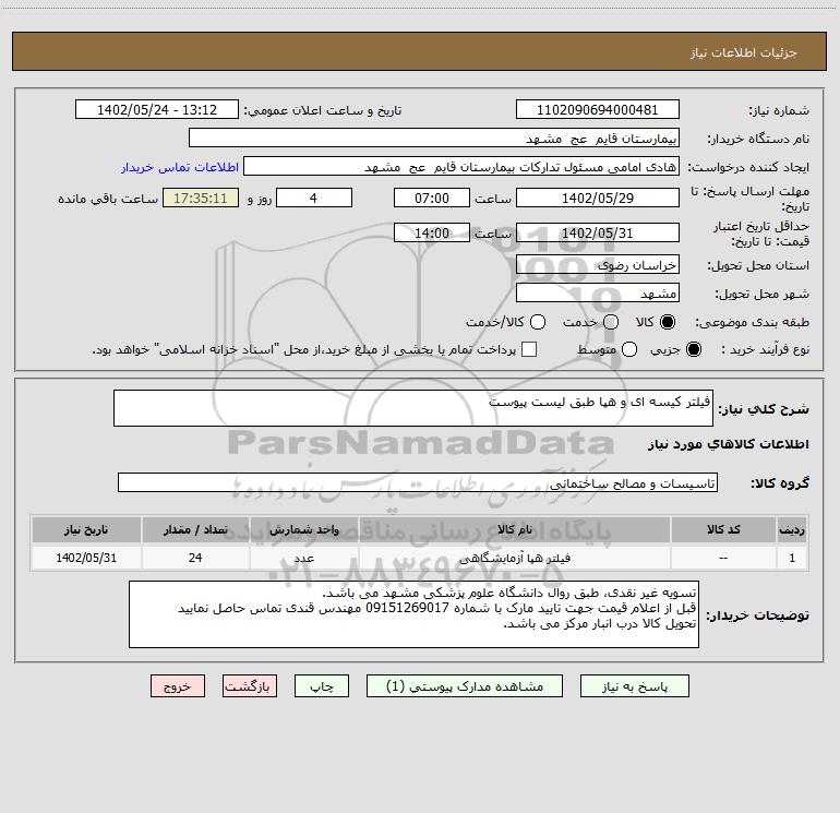 نام دستگاه خریدار:بیمارستان قایم عج مشهد