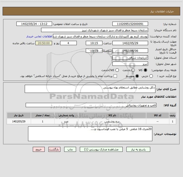 شرح کلی نیاز: دکل روشنایی مطابق استعلام بهاء پیوستی