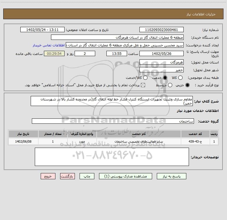 نام دستگاه خریدار:منطقه 6 عملیات انتقال گاز در استان هرمزگان