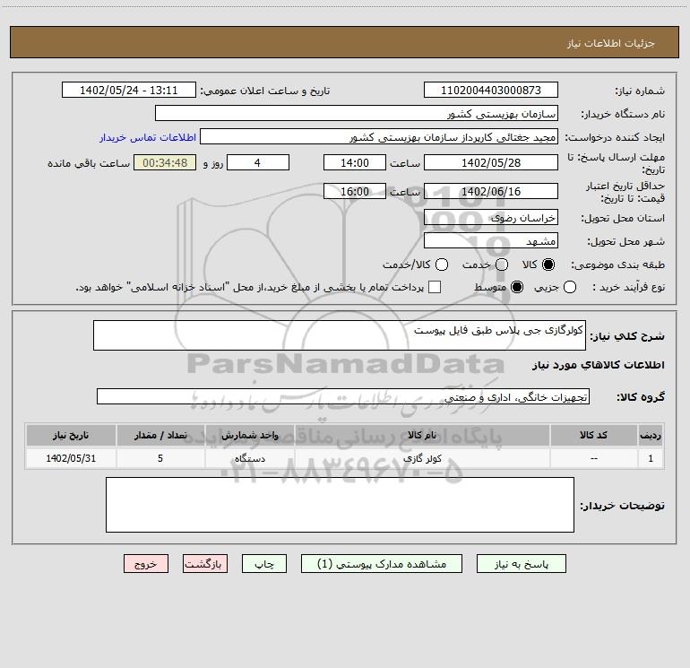 شرح کلی نیاز: کولرگازی جی پلاس طبق فایل پیوست