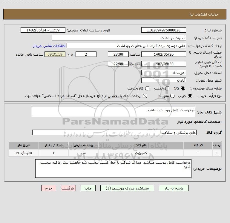 شرح کلی نیاز: درخواست کامل پیوست میباشد