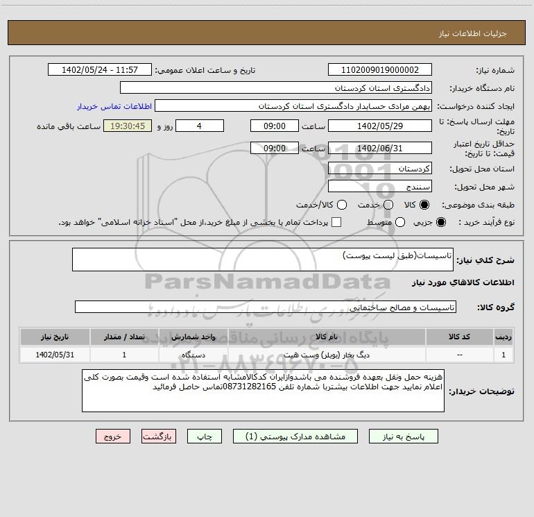 شرح کلی نیاز: تاسیسات(طبق لیست پیوست)