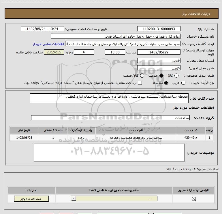 استعلام محوطه سازی،تامین سیستم سرمایشی اداره طارم و بهسازی ساختمان اداره کوهین, استعلام محوطه سازی،تامین سیستم سرمایشی اداره طارم و بهسازی ساختمان اداره کوهین