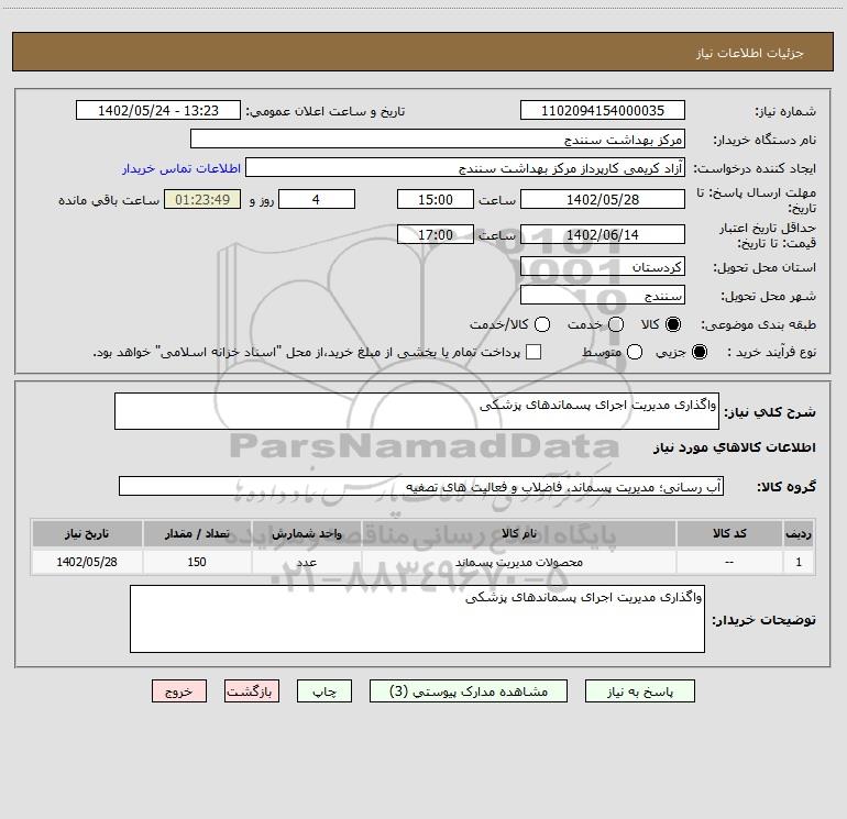 توضیحات خریدار:واگذاری مدیریت اجرای پسماندهای پزشکی