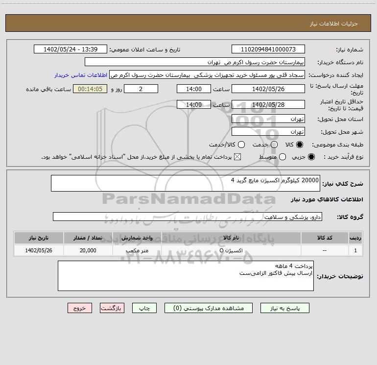 | 1 | -- | اکسیژن O | متر مکعب | 20,000 | 1402/05/26 |