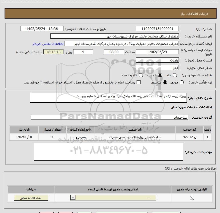 شرح کلی نیاز: پروژه زیرسازی و آسفالت معابر روستای ییلاق مرشون بر اساس ضمایم پیوست