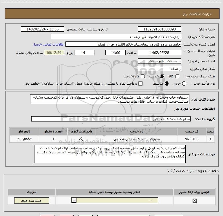 شرح کلی نیاز: استعلام چاپ وخرید اوراق چاپی طبق مشخصات فایل ومدارک پیوستی-استعلام دارای ایران کدخدمت مشابه میباشد-قیمت گذاری براساس فایل های پیوستی
