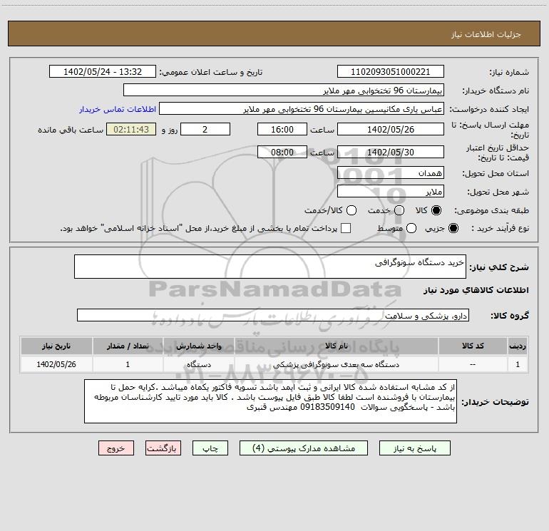 نام دستگاه خریدار:بیمارستان 96 تختخوابی مهر ملایر