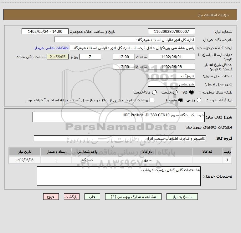 نام دستگاه خریدار:اداره کل امور مالیاتی استان هرمزگان