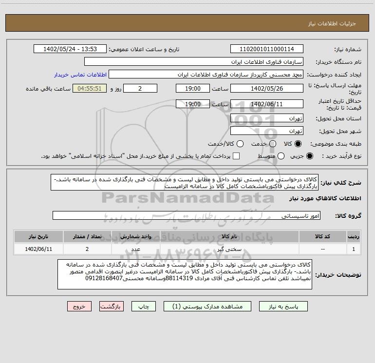 نام دستگاه خریدار:سازمان فناوری اطلاعات ایران
