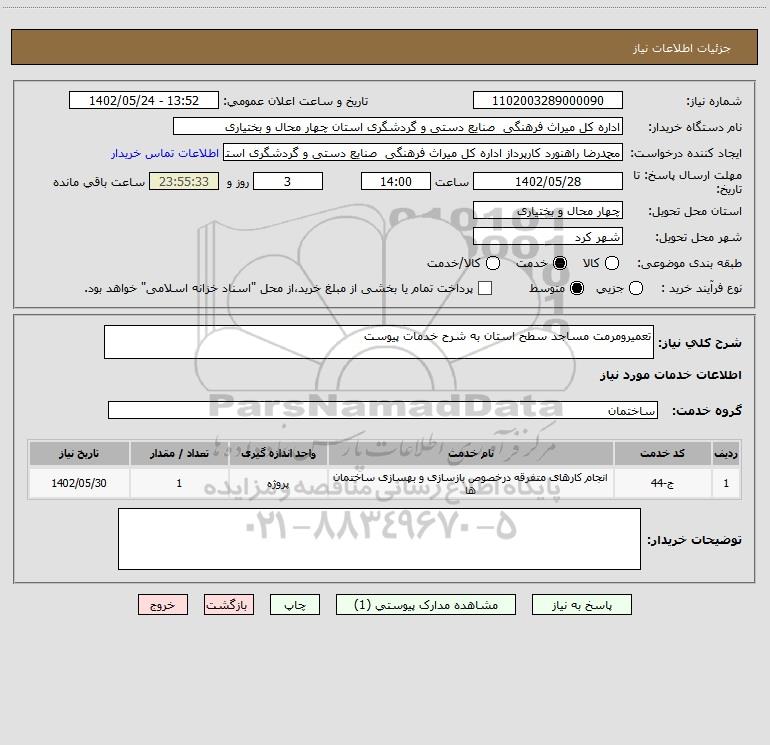 نام دستگاه خریدار:اداره کل میراث فرهنگی صنایع دستی و گردشگری استان چهار محال و بختیاری